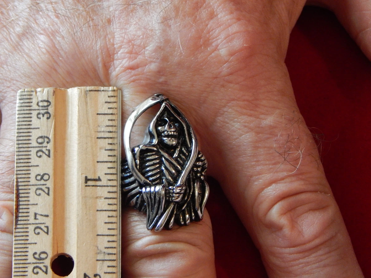 Mens Stainless Steel Skull Reaper Biker Ring Sizes 9 18 Ebay